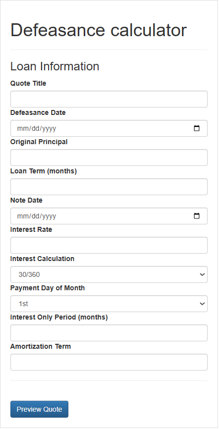 Estimate the cost of defeasing your loan, including the replacement collateral portfolio and standard third-party fees. Get a clear financial picture in seconds.