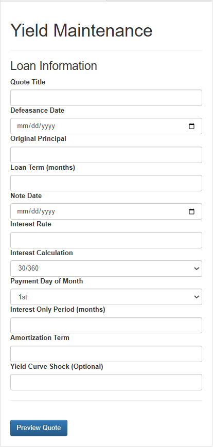 Calculate your prepayment penalty for loans with yield maintenance provisions. Run scenarios with different payoff dates to inform your strategy.
