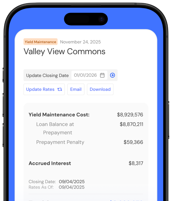 Estimate the cost of defeasing your loan, including the replacement collateral portfolio and standard third-party fees. Get a clear financial picture in seconds.